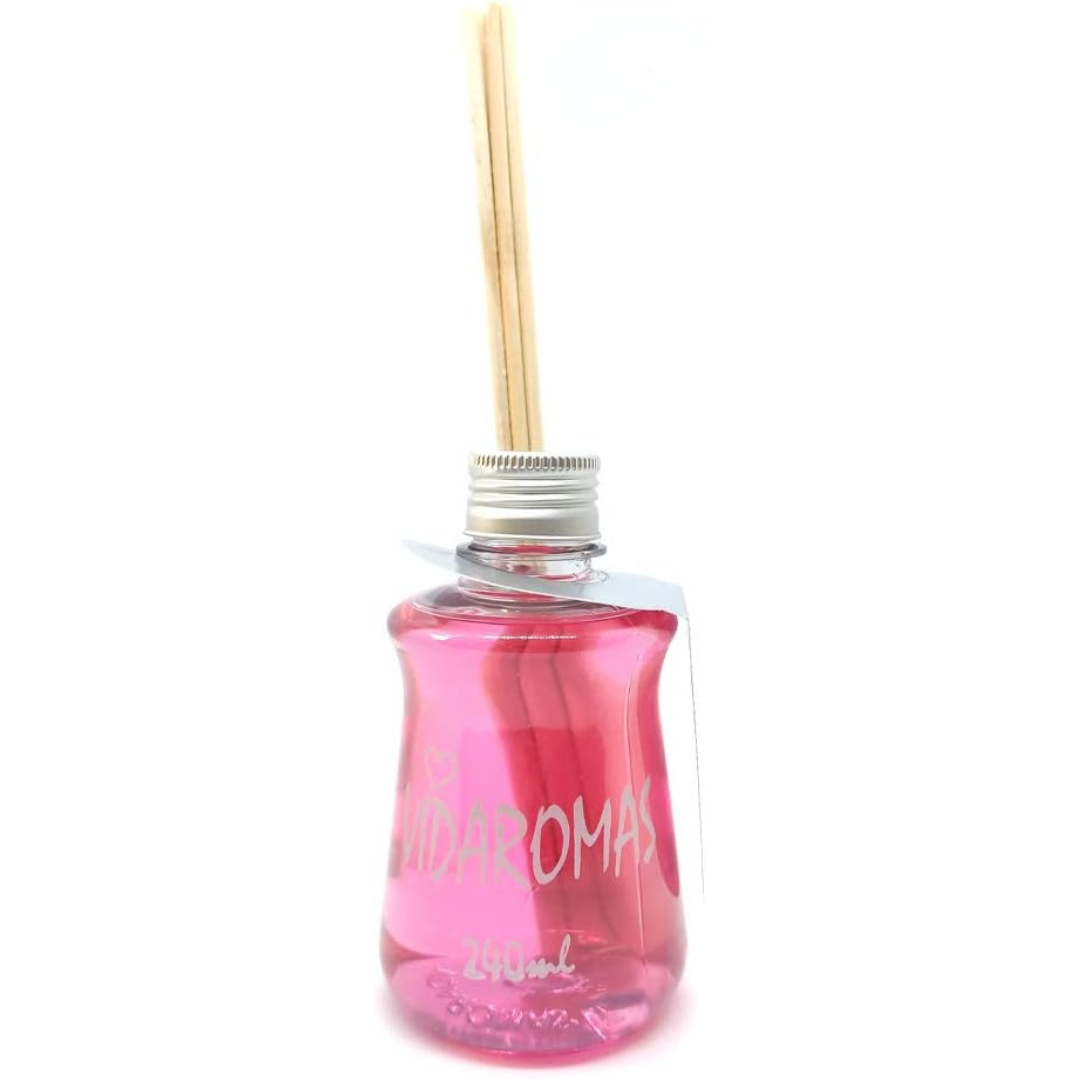 Com varetas que absorvem e difundem a fragrância, o Aromatizador Vidaromas é perfeito para qualquer espaço, desde salas de estar até quartos, proporcionando um toque de frescor e aconchego. Seu design elegante e simples, com varetas de madeira e frasco rosa, também é uma ótima opção de decoração para sua casa ou escritório.
