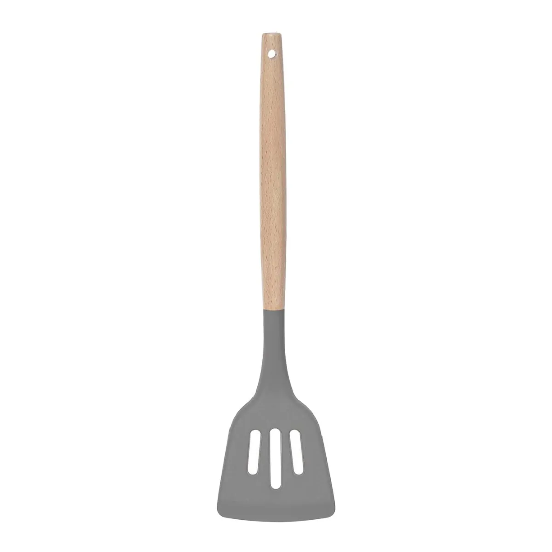 Espátula Vazada de Silicone com Cabo de Madeira - Oikos