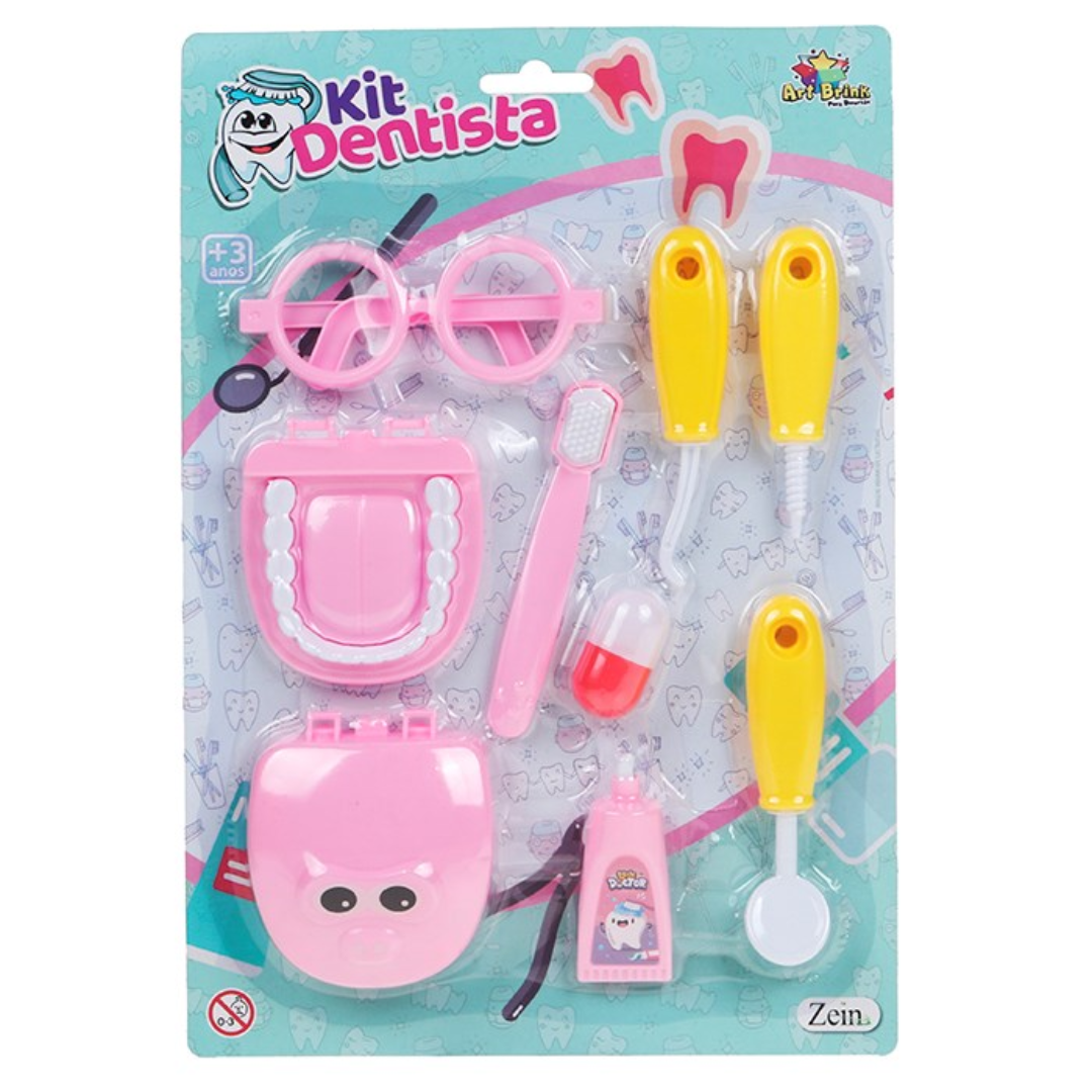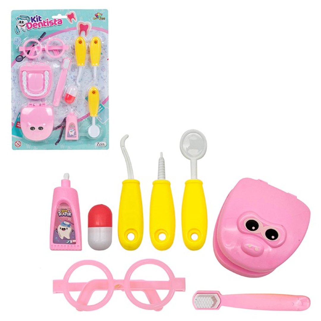 Kit Dentista Girl 8 Peças Brinquedo Rosa - Zein