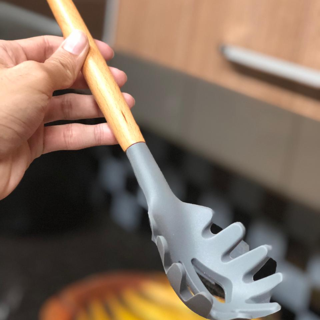 Pegador de Macarrão de Silicone com Cabo de Madeira - Oikos