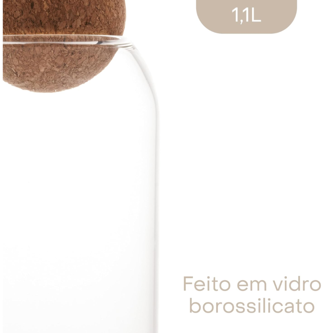 Pote de Vidro com Tampa Esfera Rolha Clean 1,1L - Lyor