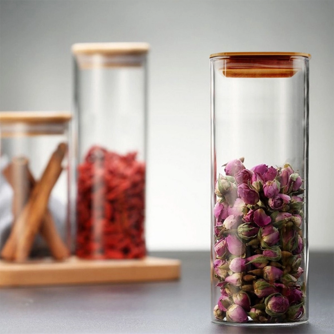 - Cor: Transparente (corpo) com tampa de bambu natural