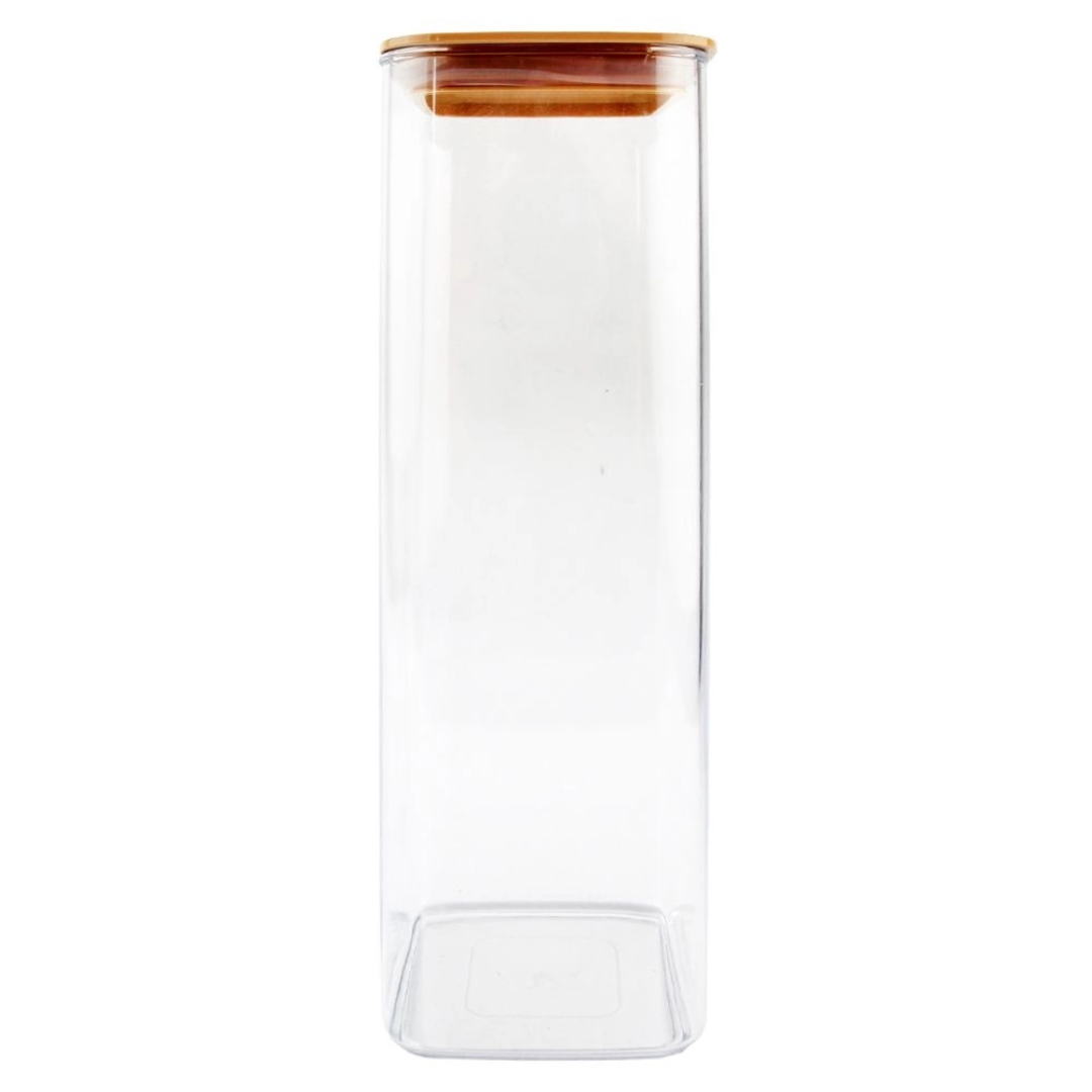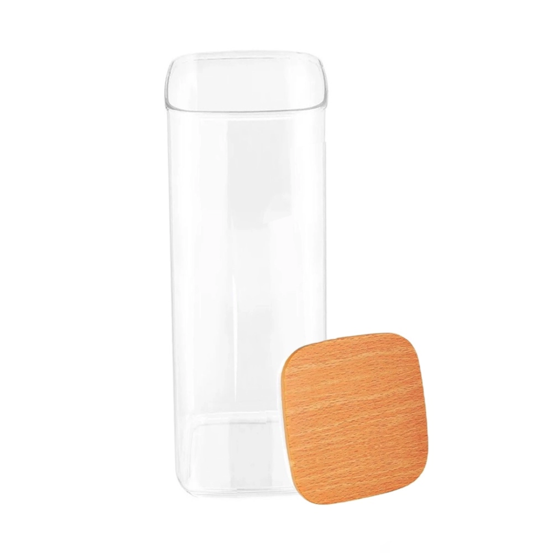Sua tampa de bambu traz um toque natural e sofisticado, enquanto o corpo transparente permite visualizar o conteúdo com facilidade. Fabricado com plástico de alta qualidade, o pote oferece resistência e praticidade no armazenamento de diversos itens.